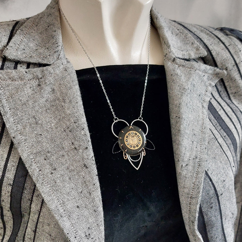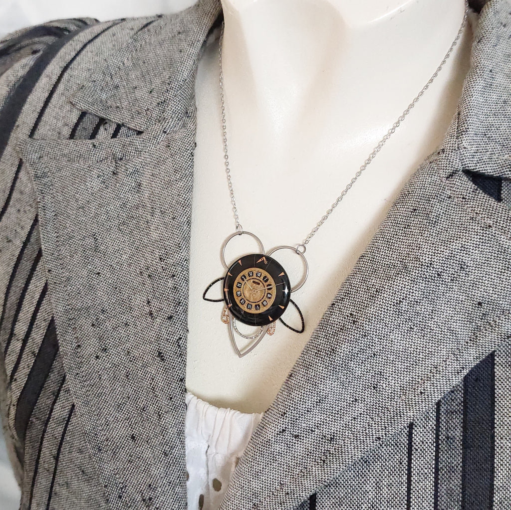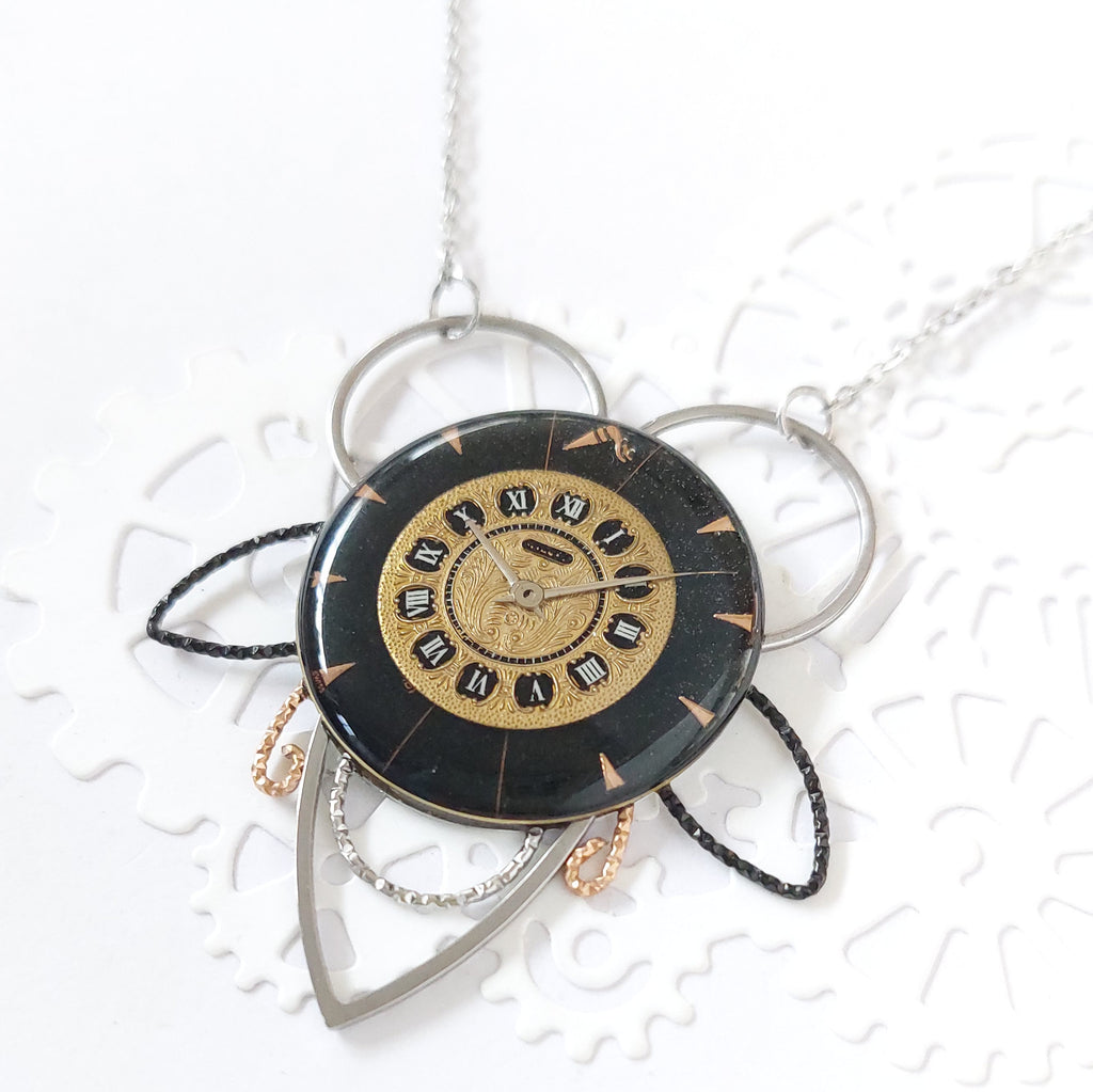 Realizzato con quadranti vintage, oro e nero.