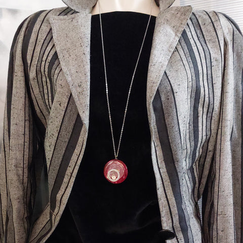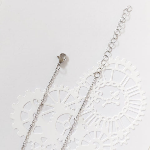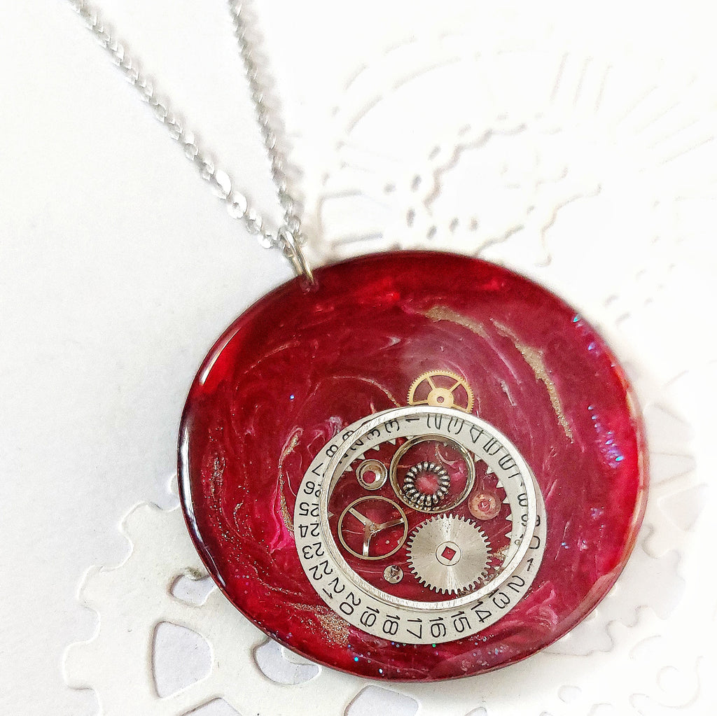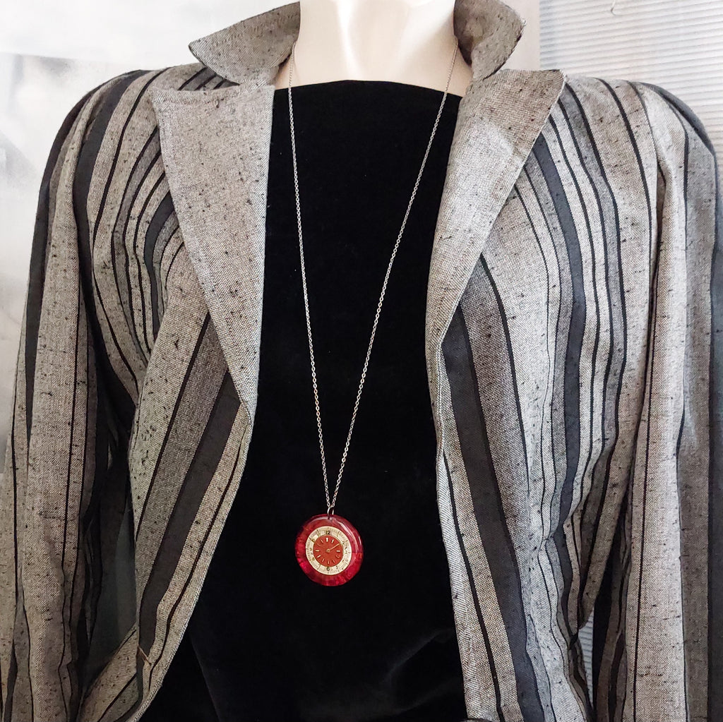 Realizzato con quadranti vintage e decorato su entrambe le facce con smalti, datari, ingranaggi e lancette.