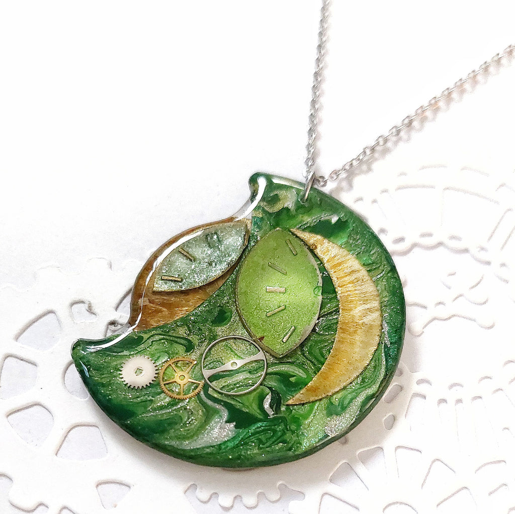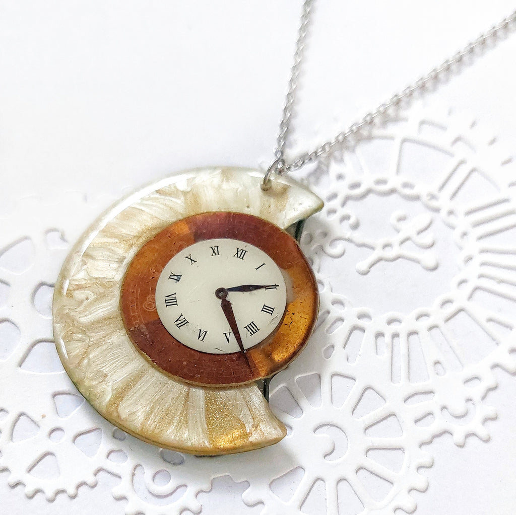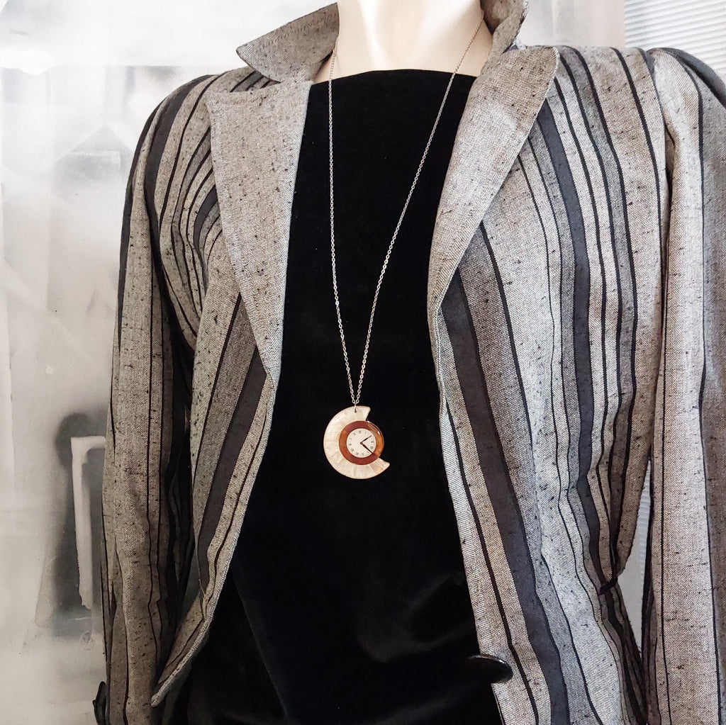 Realizzato con quadranti vintage e decorato su entrambe le facce con smalti, datari, ingranaggi e lancette.